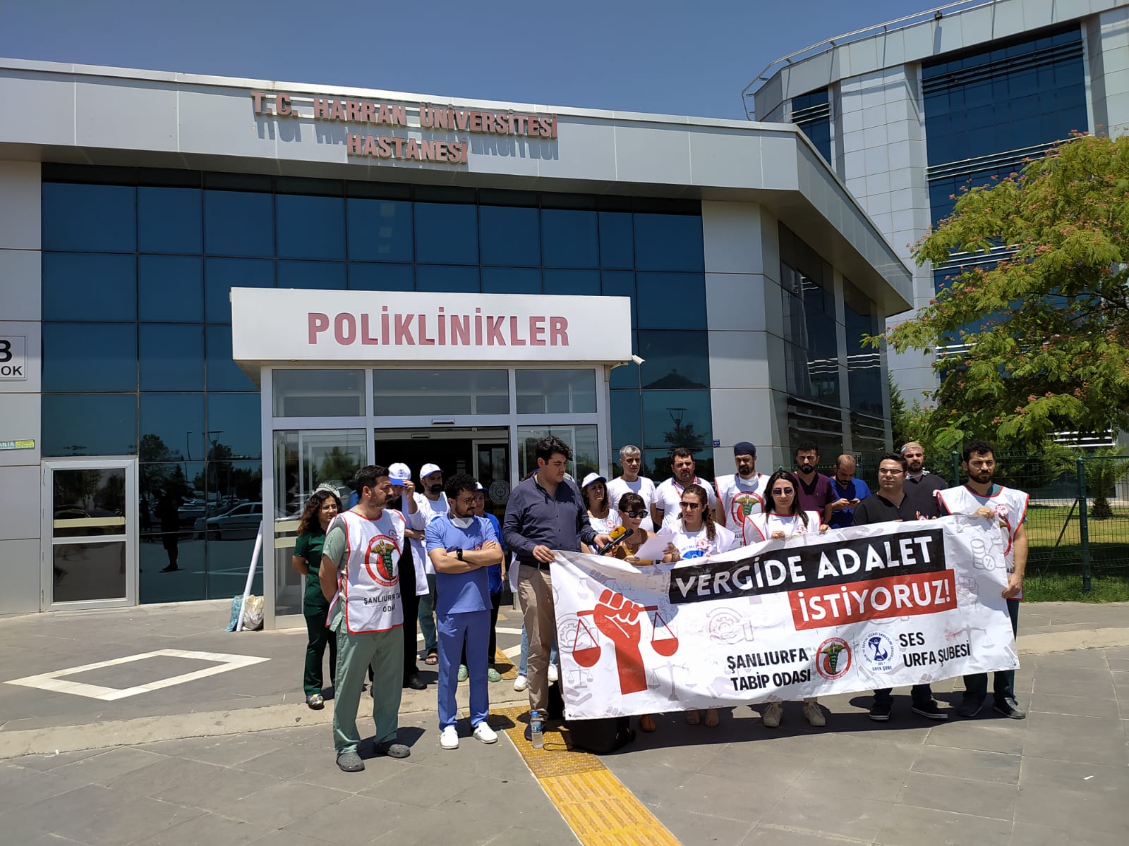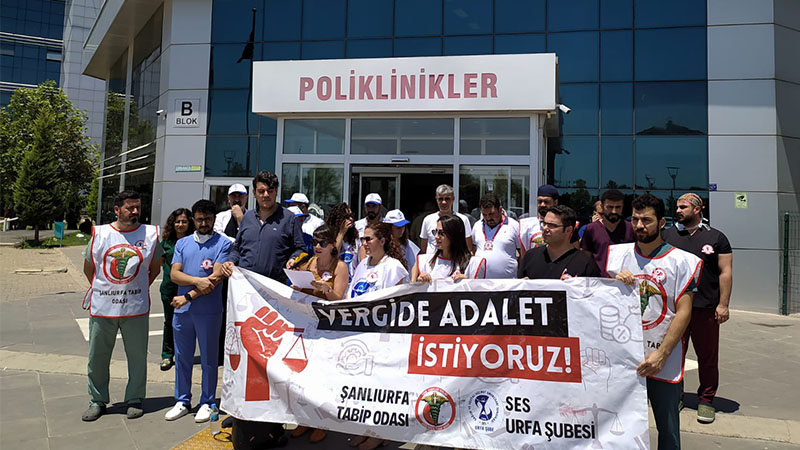 Şanlıurfa Tabip Odası ve Sağlık ve Sosyal Hizmet Emekçileri Sendikası (SES) Şanlıurfa Şubesi, on dokuz haftadır vergide adalet talebiyle eylemlerini sürdürüyor.