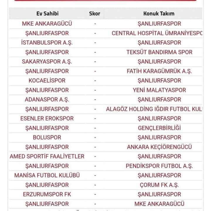 Şanlıurfaspor’un İstanbul deplasmanında, oynayacağı takımlar ise şöyle: