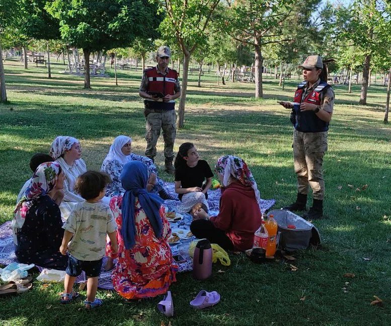 Jandarma ekipleri tarafından ilçede bulunan parklarda oturan kadınlar jandarma tarafından KADES hakkında bilgi verildi.