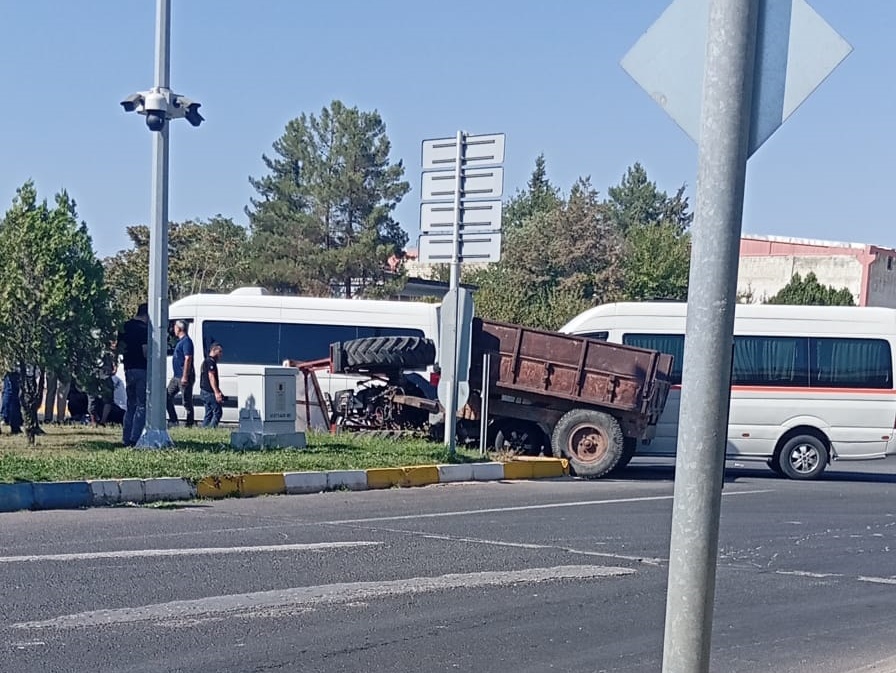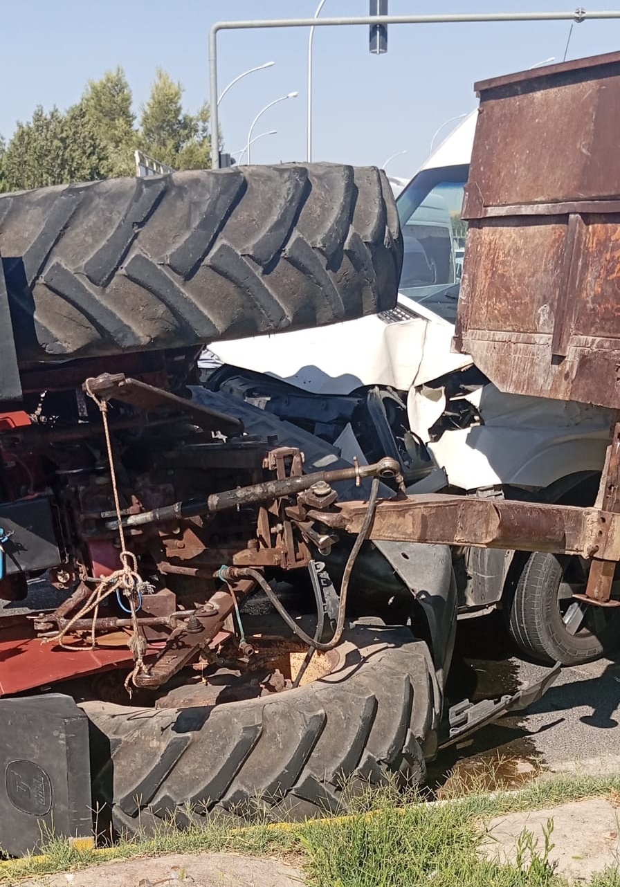 İddiaya göre, henüz sürücülerin ismi öğrenilmeyen 63 DD 252 plakalı traktör ile servis minibüsü Organize Sanayi köprülü kavşağında kafa kafaya çarpıştı.
