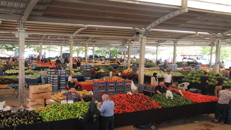 Karpuzun kilogram fiyatını 5 liradan satmaktayız. Karpuzu bir ay öncesine kadar 10 liradan satmaktaydık şuan ise fiyatı baya uygun. Her geçen gün fiyatlar düşüyor. Halkımız alıyor ve halkımızda alım gücü var. Karpuzun fiyatı marketlerde, manavlarda ve sergilerde 8 lira, pazarlarda ise 5 liradır. Karpuzun tarladaki fiyatı ise 1,5-2 liradır. 1 lirası kiraya gidiyor toplamda 3 liraya bizlere ulaşıyor. Bizimde satış fiyatımız 4-5 lira arasına değişmektedir. Fiyatları şuan ki piyasaya göre normal karşılıyorum. Bir ay öncesine kadar tarladan 8 liraya satışa sunulan karpuzun fiyatı tarlada 1,5-2 liraya kadar düştü. Çiftçiler düşük olan bu fiyatlardan memnun değil. Meyve kategorisinde en pahalı meyve 40 lira ile incir ve muzdur. Şeftali ve nektarinin fiyatları 25, armudun fiyatı ise 30 liradır. Halkımızda şuan alım gücü var. Fiyatlar akşam daha uygun olduğu için asgari ücretliler akşam pazara gelmektedir.”