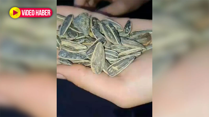 Görüntülerde, bir genç elindeki çekirdek paketini açtığında fare kafasıyla karşılaşıyor.