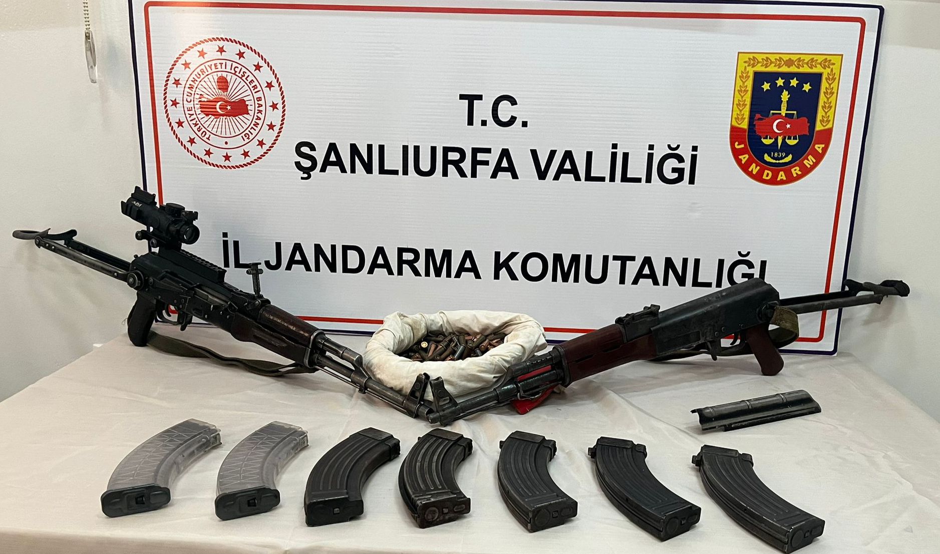 Jandarma ve Emniyet Müdürlüğü tarafından ortaklaşa yürütülen operasyonlarda, 7 adet tabanca, 2 adet uzun namlulu silah, 7 adet tüfek, 2 bin 375 kök Hint keneviri (esrar), bir adet dürbün ve çok sayıda mermi ile şarjör ele geçirildi.