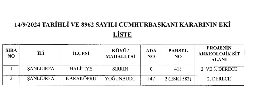 Cumhurbaşkanı Recep Tayyip Erdoğan’ın imzasıyla Resmi Gazete’de yayımlanan yeni kararda, bölgede yapılacak arkeolojik kazı çalışmalarını desteklemek amacıyla bazı taşınmazların acele kamulaştırılması kararı yer aldı.
