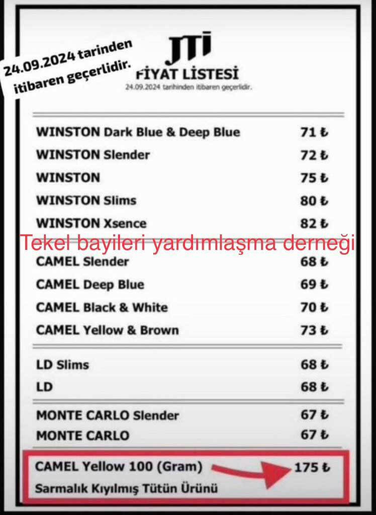 Erol Dündar Camel Yellow 100 (Gram) sarmalık tütüne zam gelerek fiyatının 165 liradan 175 liraya çıktığını belirti.
