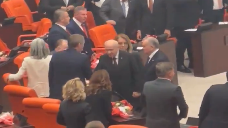 Bahçeli, DEM Parti Eş Genel Başkanı Tuncer Bakırhan, DEM Parti Grup Başkanvekili Sezai Temelli, DEM Parti Van Milletvekili Pervin Buldan ve DEM Parti Ağrı Milletvekili Sırrı Sakık'ın da bulunduğu isimlerle tokalaştı.