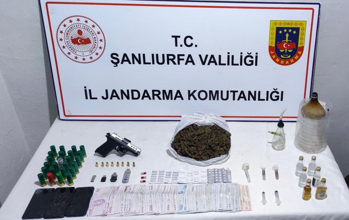 Yapılan aramalarda, 3 kilo kubar esrar, 42 uyuşturucu hap, 6 adet uyuşturucu etkisini arttıran sıvı, 1 ruhsatsız tabanca, 1 tabanca şarjörü, 31 fişek, 3 cep telefonu, 4 flash bellek, 20 bin 650 lira suç geliri para, 1 çalıntı motosiklet ele geçirildi.
