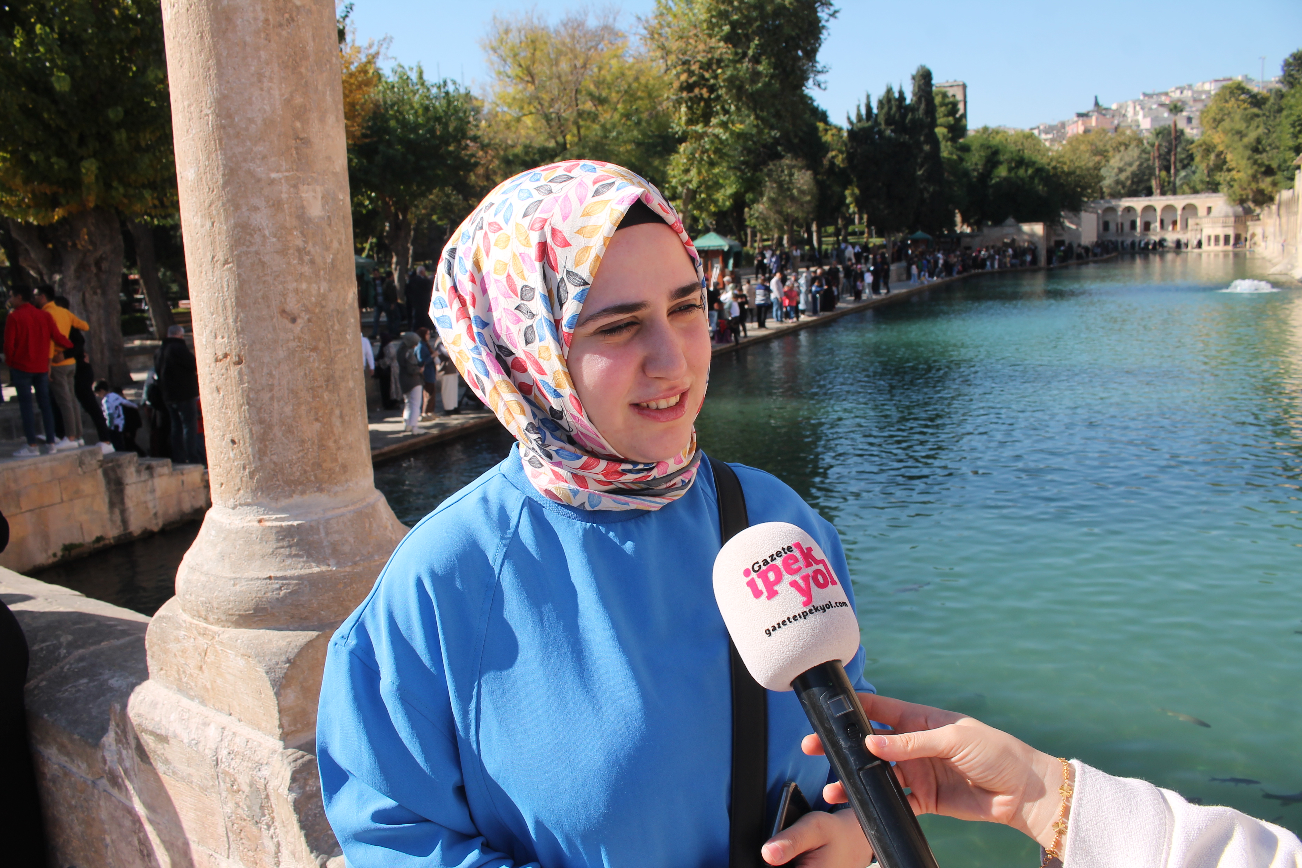 Ara talini fırsat bilip Şanlıurfa’ya geldiğini belirten Zeynep Kaya,”Ara tatilini Şanlıurfa’da değerlendirmek için geldik, ilk durağımız Balıklıgöl oldu. Daha önce görsellerinde gördük Balıklıgöl, Göbeklitepe gibi diğer kültür yerleri gezeğiz”dedi.