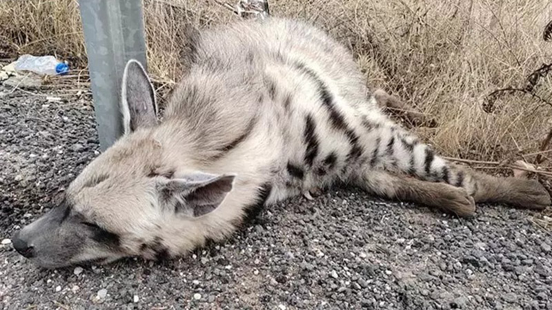ŞANLIURFA- Halfeti’de nesli tükenme tehlikesi altındaki çizgili sırtlan ölü bulundu.