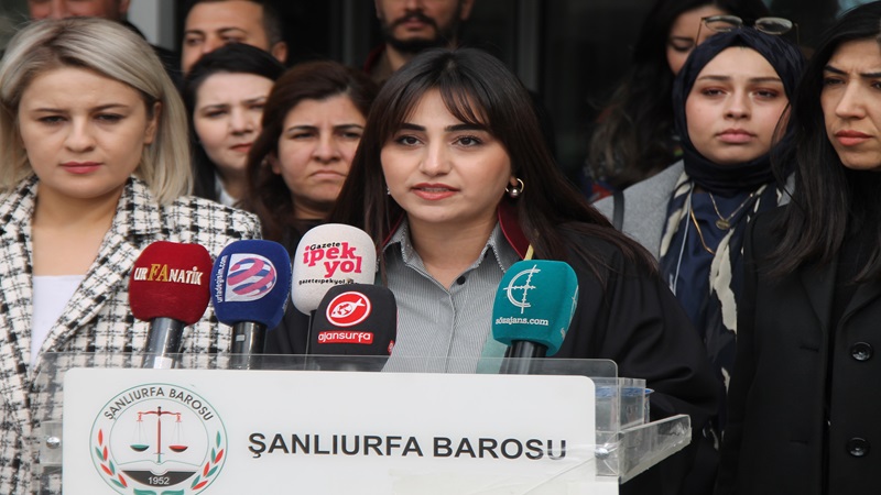 Açıklama, Şanlıurfa Barosu önünde gerçekleştirildi ve Şanlıurfa Barosu Kadın Hakları Merkezi Başkan Yardımcısı Şirin Cemile Kızılkaya tarafından okundu.