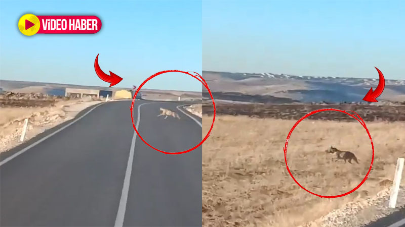 Bir araç sürücüsü, hareket halindeki aracından yolda bir canlı fark etti ve dikkatlice bakınca bunun bir çizgili sırtlan olduğunu anladı. O anda cep telefonunu çıkararak bu nadir anı kaydetti.