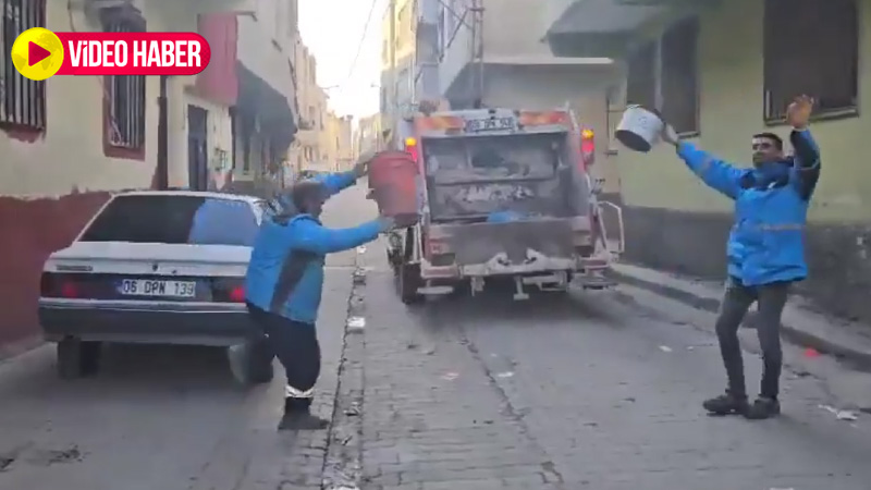 Eyyübiye'de temizlik personelleri, çöp aracına çöp toplarken bir yandan da açılan müzik eşliğinde oynaması sosyal medyada kısa sürede beğeni topladı.