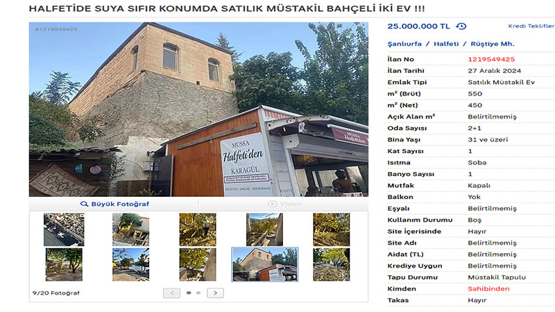 Şanlıurfa'da bir ilan sitesinde satılığa çıkarılan bahçeli müstakil ev, herkesi şaşkına çevirdi.