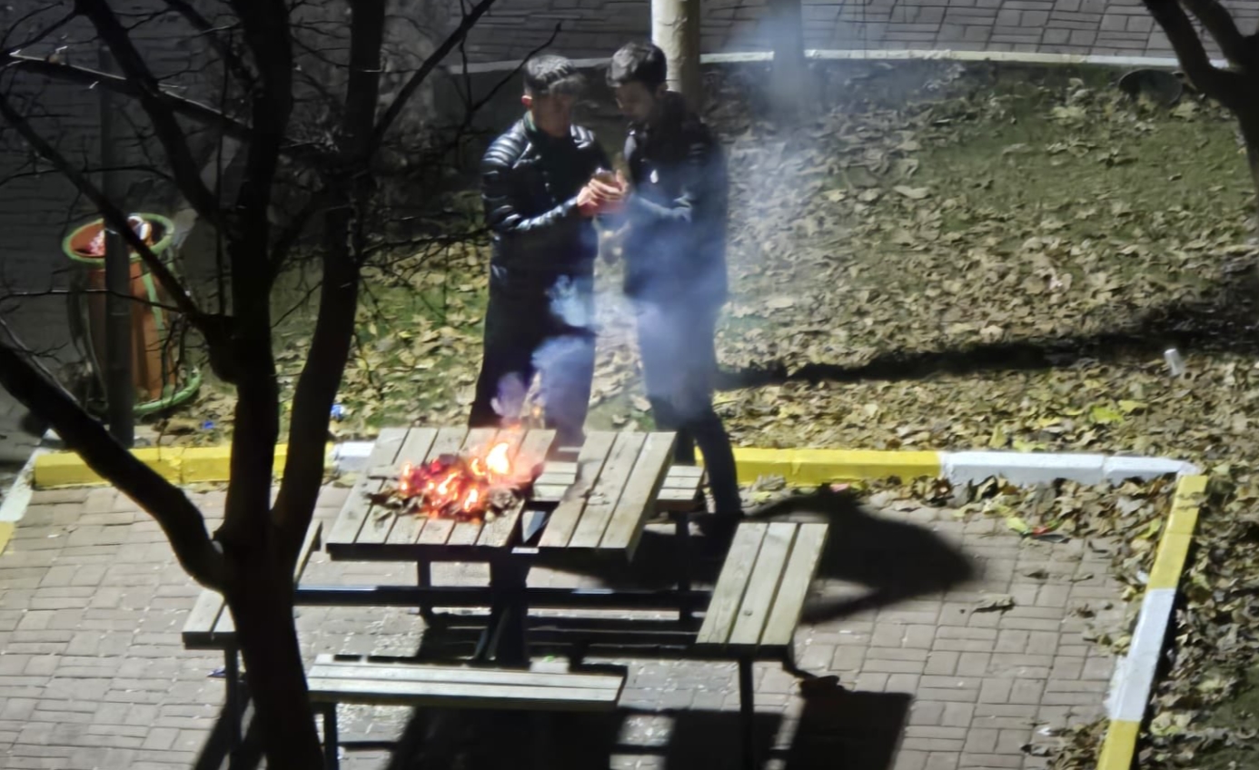 Karaköprü'de 2 genç bir parkta sosyal medyada paylaşmak için bir bankta ateş yaktı. Zabıta Müdürü duruma sert tepki göstererek "Parkları yakmıyorlar cinayet işliyorlar" dedi.