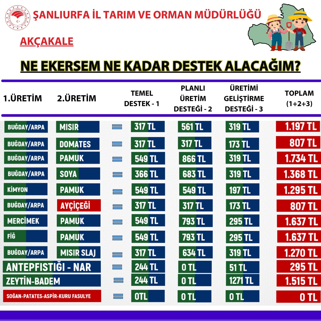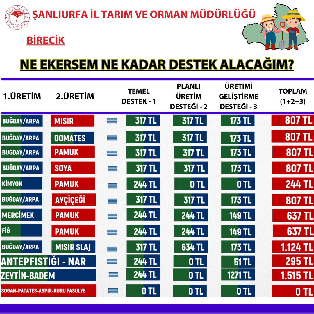 Sosyal medya hesapları üzerinden yapılan duyuruda, ekilen ürünlere göre çiftçilerin alacakları destek miktarları netleşti. Desteklerin, çiftçilerin ekim yapacakları ürünlere göre değişeceği belirtildi.