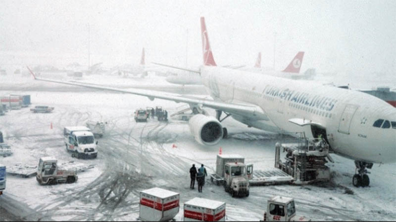 İstanbul'da etkili olmaya başlayan soğuk hava dalgası ve fırtına, hava trafiğini olumsuz etkiliyor. Türk Hava Yolları, İstanbul Havalimanı'ndan gerçekleştirilecek bazı seferlerini iptal etti.