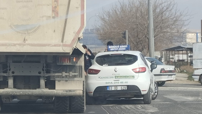 İddiaya göre, sürücüsü ve plakası henüz öğrenilemeyen Şanlıurfa Büyükşehir Belediyesi'ne ait bir kamyon ile sürücüsü henüz belirlenemeyen 63 BD 629 plakalı direksiyon eğitim aracı, test sürüşü yolunda çarpıştı.