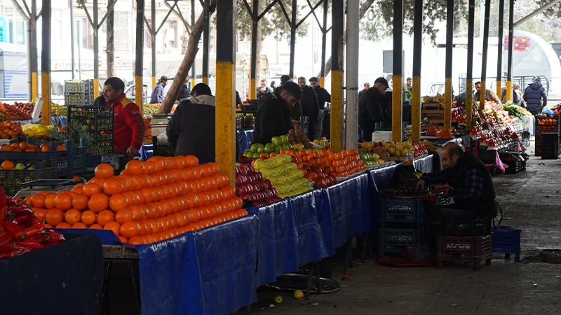 Vatandaşlar için pazarda taze meyve ve sebzelerden, gıda ürünlerine, kadar geniş bir yelpazede ürünler satışa sunuluyor.