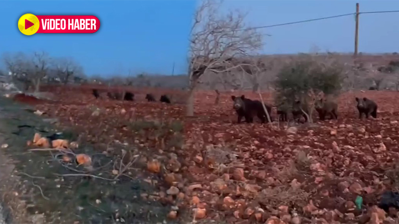 Bozova’da tarlasına giden bir çiftçi hiç beklemediği bir manzarayla karşılaştı. Karşısında domuz sürüsü gören çiftçi, o anları cep telefonuna kaydetti.