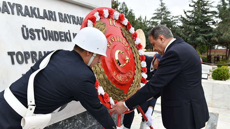 İlk olarak Osmanbey Yeni Şehitlik Alanı’nda, Şanlıurfa Valisi Hasan Şıldak başta olmak üzere, Büyükşehir Belediye Başkanı Mehmet Kasım Gülpınar, İl Emniyet Müdürü Atilla Aksoy, Cumhuriyet Başsavcısı Cuma Çoban, İl Jandarma Komutanı Tuğgeneral Mücahit Avkıran, Garnizon Komutan Vekili Tuğgeneral Erdin Kaya, Harran Üniversitesi Rektörü Prof. Dr. Mehmet Tahir Güllüoğu, Vali Yardımcıları, Kaymakamlar, daire amirleri, askeri erkan ve sivil toplum kuruluşu temsilcileri katıldı.