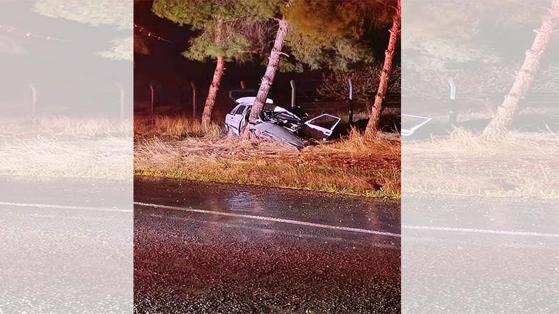 Çarpışmanın ardından araçlardan biri, yol kenarındaki ağaca çarparak hurdaya döndü.
