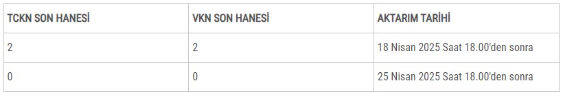 Not: Mazot ve gübre desteği ödemeleri, T.C. kimlik numarası ve vergi kimlik numarasının son hanesi 2 olan çiftçilerimize ve diğer destekler tüm hak sahiplerine 18 Nisan 2025 tarihinde yapılacak.