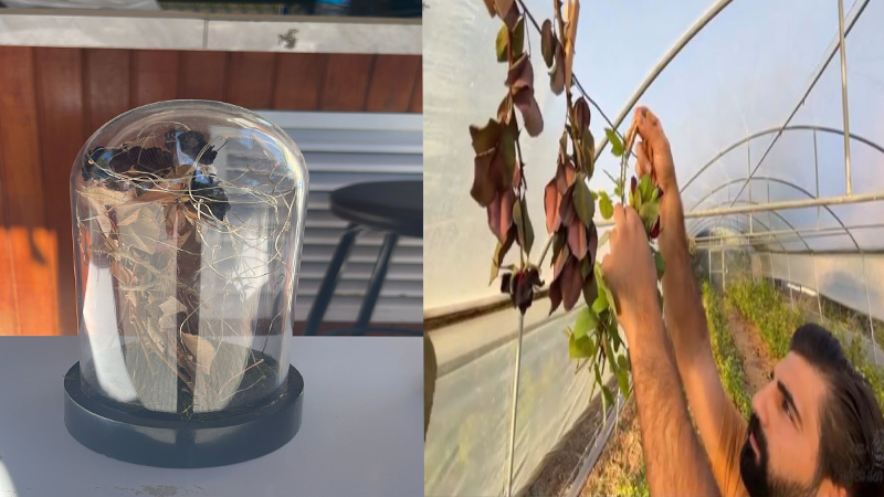 Halfeti’de karagül üreticisi olan Devrim Tutuş, hiçbir dış müdahale olmaksızın,kendi doğasında siyah açan bu gülü cam fanusta muhafaza ettiklerini belirterek şunları kaydetti: