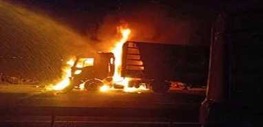 Şanlıurfa’da seyir halindeki tır alev aldı! Metrelerce kuyruk oluştu