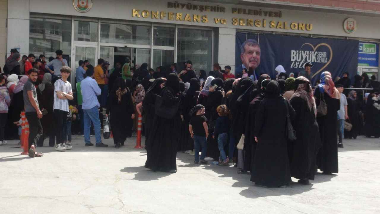 Şanlıurfa’da bulanan Suriyelilere bir yardım kuruluşu tarafından Ramazan Bayramı öncesi 500 ile 2 bin lira arasında nakdi yardım yapıldı. Aile ve hane sayısına göre belirlenen yardımdan yararlanmak isteyen Suriyeliler, Büyükşehir Belediyesi Konferans Salonu önünde ve içerisinde uzun kuyruklar oluşturdu. Kuyrukta bekleyen Suriyeliler zaman zaman aralarında tartışma yaşadı. BİHA