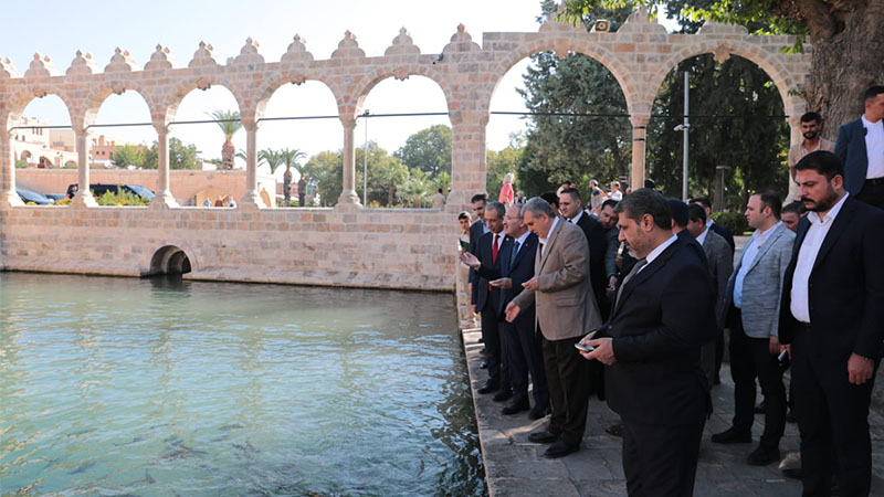 Çeşitli temas, inceleme ve açılışlarda bulunmak üzere Şanlıurfa’ya gelen TBMM Başkanvekili ve AK Parti Şanlıurfa Milletvekilli Bekir Bozdağ, Şanlıurfa Büyükşehir Belediye Başkanı Zeynel Abidin Beyazgül ile birlikte tarihi Balıklıgöl Platosunda vatandaşlarla bir araya geldi.