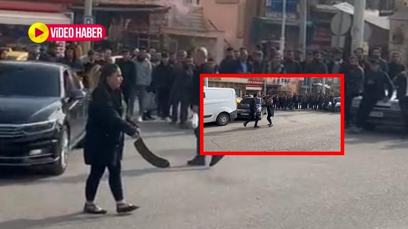 Fatma D. isimli kadın elinde satırla cadde ortasında gezerek çevredekilere tehditler savurmaya başladı. Kocasının gelmesini isteyen kadının elinden satır, ismiyle hitap eden 2 şahıs tarafında alındı. Kadınla şahıslar arasında itiş kakış yaşandı.