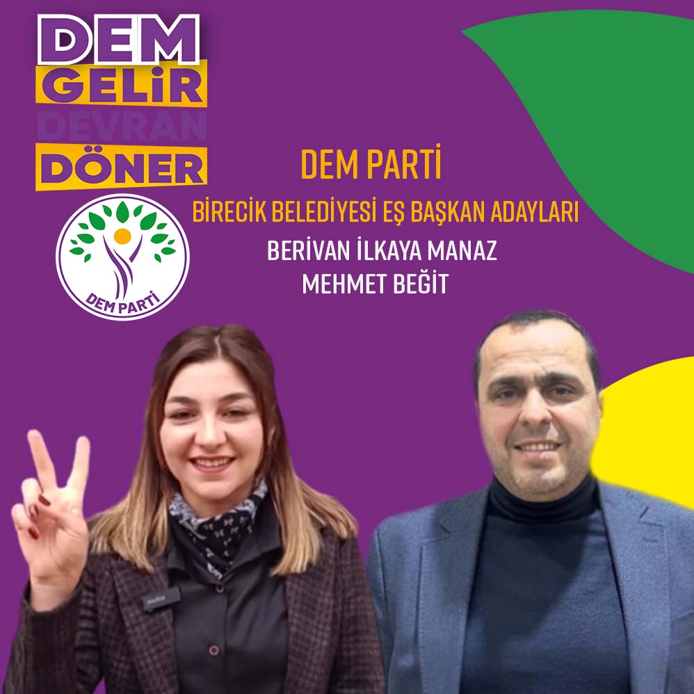 DEM Parti’nin Birecik Belediye başkan adayları Berivan İlkaya Manaz ve Mehmet Begit oldu.