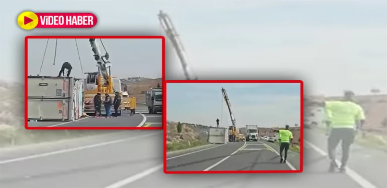 İddiaya göre, henüz plakası öğrenilemeyen seyir halindeki tırın sürücüsü, kara yolunun 25. kilometresinde direksiyon hâkimiyetini kaybetti. Kontrolden çıkan taşıt, yan yatarak durabildi.