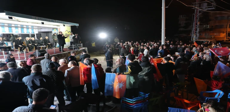 “Allah’ın izniyle biz sizlere efendi olmaya değil, sözümüzün eriyiz, hizmetkar olmaya geldik. Biz AK Parti olarak hizmetlerimizle sizlerin gönüllerinde, dualarında yer alıyoruz. İfade ettiğim gibi AK Parti demek hizmet demek, Cumhurbaşkanımız başta olmak üzere bakanıyla, milletvekiliyle, büyükşehir belediye başkanıyla, ilçe başkanlarıyla birlik ve beraberlik içerisinde hizmet demektir. Bölgemizi güzelleştirmek adına bu şahıs, bu belediye başkanınız, bu hizmetkarınız elinden genel her türlü gayreti büyükşehir belediye başkanımız başta olmak üzere bakanımızla, vekillerimizle bölgemiz için her türlü gayreti gösterdiğimizi ifade etmek isterim. Sizlerden 31 Mart’ta çok güçlü bir destek bekliyoruz. Sizlerden AK Parti adına, Recep Tayyip Erdoğan adına, büyükşehir adına, ilçelerimiz ve meclisimiz adına sizlere inanıyoruz ve güveniyoruz. Sizleri Allah’a emanet ediyorum, sağ olun var olun.”