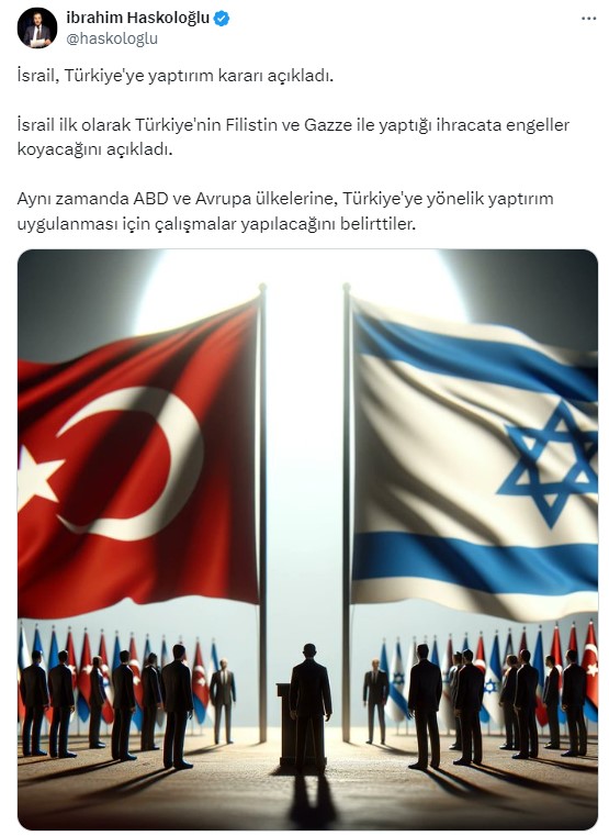 Gazeteci İbrahim Haskoloğlu İsrail’in Türkiye'ye karşı yaptırım kararı aldığını ileri sürdü.