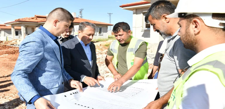 Şanlıurfa Valisi Hasan Şıldak, Halfeti Argıl Mahallesinde yapımı devam eden deprem konutlarını inceledi.