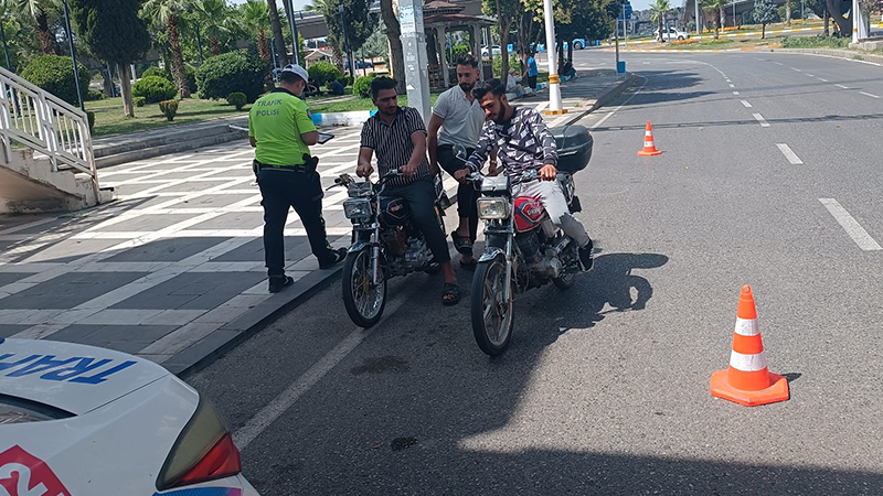Denetimlerde; tescil plakası olmayan/takmayan, sürücü belgesiz, yaya ve araç trafiğini tehlikeye düşürecek şekilde motosiklet kullanan sürücülere, Karayolları Trafik Kanunu'nun ilgili maddelerinden trafik idari para cezası uygulandı.