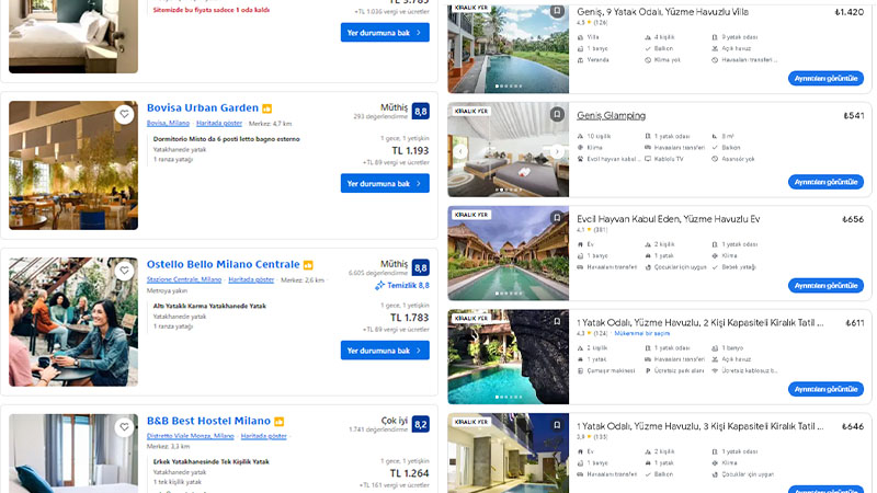 Şanlıurfa'da bir gecelik otel fiyatları 2 bin TL ile 5 bin TL arasında değişirken, Milano'da bazı otellerin ücreti 1000 TL ile 4000 TL arasında değişiyor. Bali'de ise bu fiyatlar 500 TL ile 1000 TL arasında değişim gösteriyor.