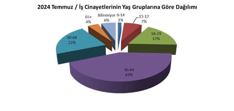 2024 YILININ TEMMUZ AYINDA İŞ CİNAYETLERİNİN YAŞ GRUPLARINA GÖRE DAĞILIMI