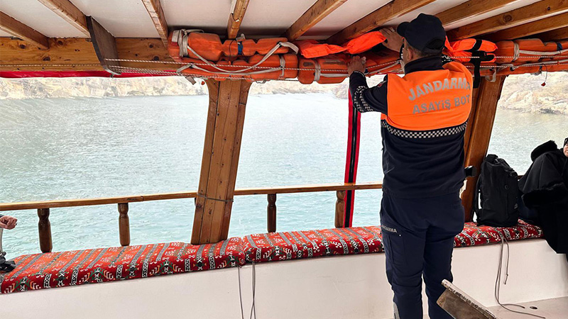 HALFETİ- Şanlıurfa'nın Halfeti ilçesinde, Jandarma Asayiş Bot Komutanlığı tarafından Marina bölgesindeki gezi tekneleri üzerinde denetimler sürüyor.