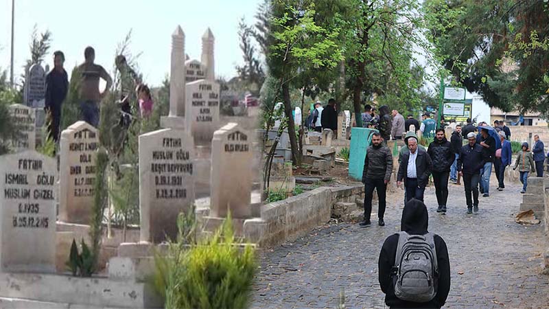 Şanlıurfa'daki mezarlıklar, Ramazan Bayramı'nın ilk gününde yağmura rağmen vatandaşlar tarafından ziyaret edildi.