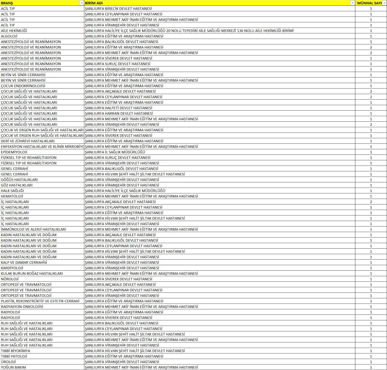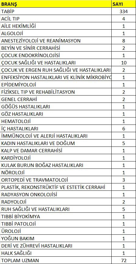 İşte atama yapılan branş ve hekim sayıları ile hekimlerin görev yerleri: