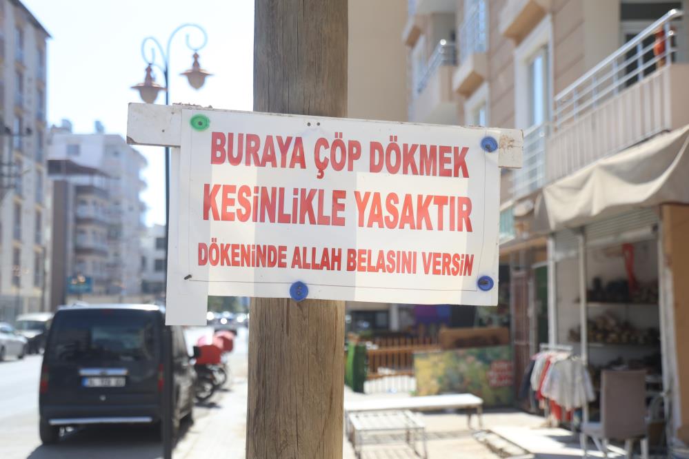 Hatay’da iş yeri bulunan esnaf Hasan Günel, apartman köşesine sürekli çöp bırakılmasından rahatsız olunca apartman sakinleriyle ortak bir karar aldı. Çöplerin önüne geçmek için duvara, ‘‘Buraya çöp dökmek kesinlikle yasaktır, dökenin Allah belasını versin’’ yazılı bir tabela asıldı.