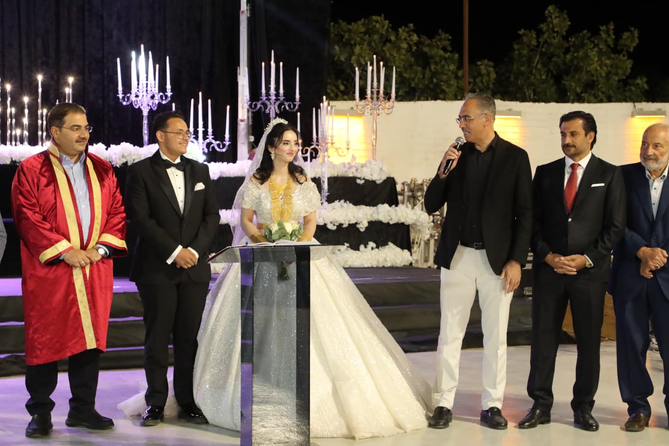 İnşaat mühendisi olan çiftin nikâhını Haliliye Belediye Başkanı Mehmet Canpolat kıyarken, şahitliklerini Milletvekili Mehmet Ali Cevheri, Başkan Kuş, Kaymakam Altun, Genel Sekreter Yardımcısı Akıllı, Başkan Vekili Erik, Bölge Müdürü Günay, iş insanları Ferdi Paydaş, Mustafa Kaplan, Maksut Arısüt, Mahmut Paydaş, İsmail Coşkun, Beşir Coşkun ve Araştırmacı-Yazar Abdülhamid Çelik yaptı.