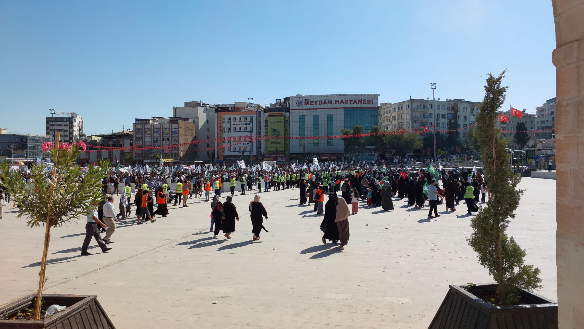 Tevhid Dergisi ve Köklü Değişim Derneği öncülüğünde, çok sayıda sivil toplum kuruluşunun destek verdiği etkinlikte binlerce kişi Ali Şelli Parkı’ndan Rabia Meydanı’na kadar yürüyerek barış çağrısında bulundu.