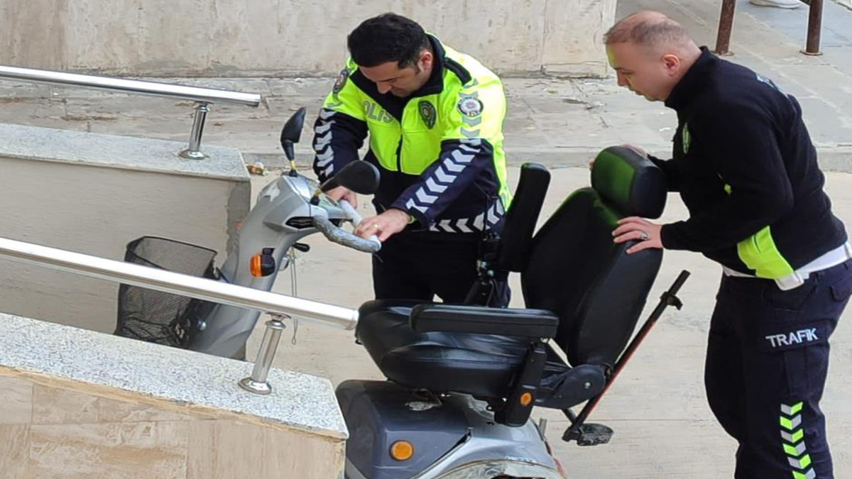 Açık Öğretim Lisesi sınavına girmek üzere akülü sandalyesiyle yola çıkan bedensel engelli Hüseyin Adlin, yolda mahsur kaldı. Akülü tekerlekli sandalyenin lastiği patladığı için gidemeyen Adlin, sınava geç kalacağını anlayınca İlçe Emniyet Müdürlüğünü arayarak polislerden yardım istedi.