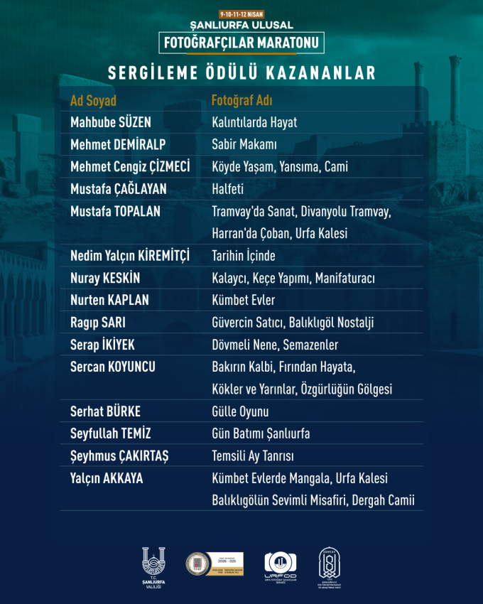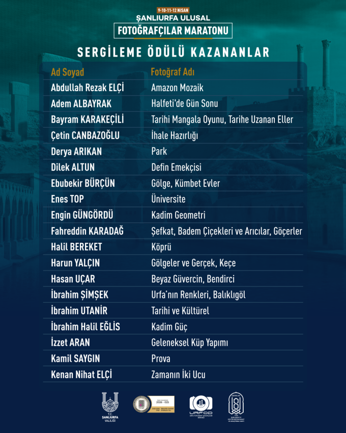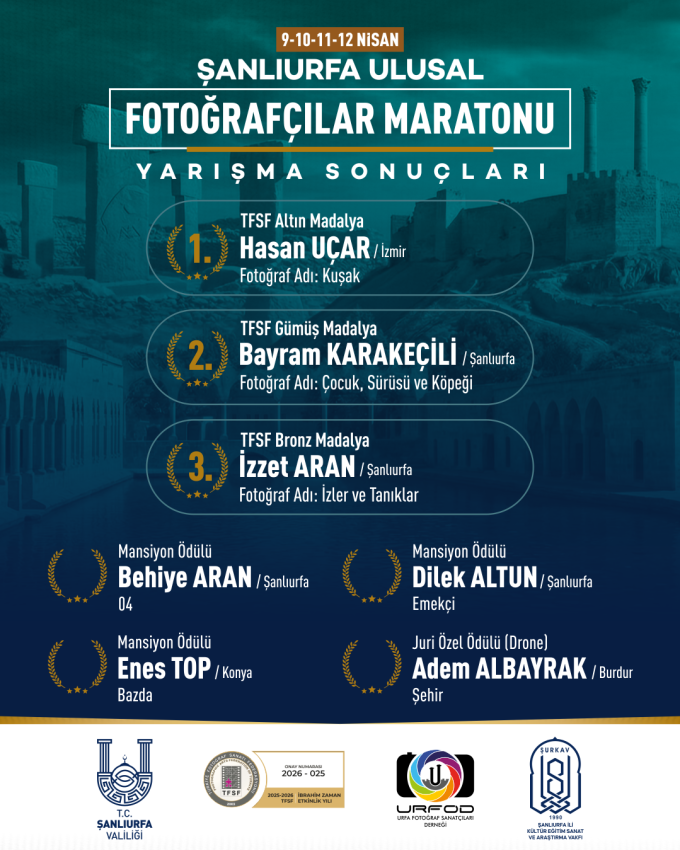 Şanlıurfa Kültür Eğitim Sanat ve Araştırma Vakfı (ŞURKAV) tarafından 9-12 Nisan tarihleri arasında düzenlenen yarışma, kentin tarihi ve kültürel zenginliğini yansıtan yüzlerce kareye ev sahipliği yaptı.