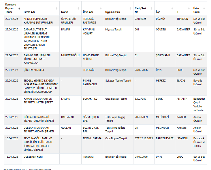Tarım ve Orman Bakanlığı tarafından yapılan denetimlerin ardından ürünlerinde taklit ve tağşiş yaptığı anlaşılan firmaların listesi yayımlanmaya devam ediyor.