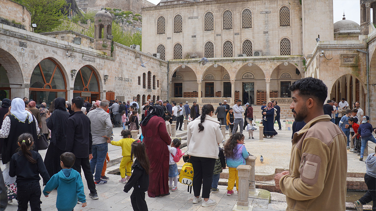 Balıklıgöl'de aileler, gençler ve çocuklu ziyaretçiler hem ibadet etti hem de kutsal kabul edilen balıklara yem atarak ziyaretlerini sürdürdü.
